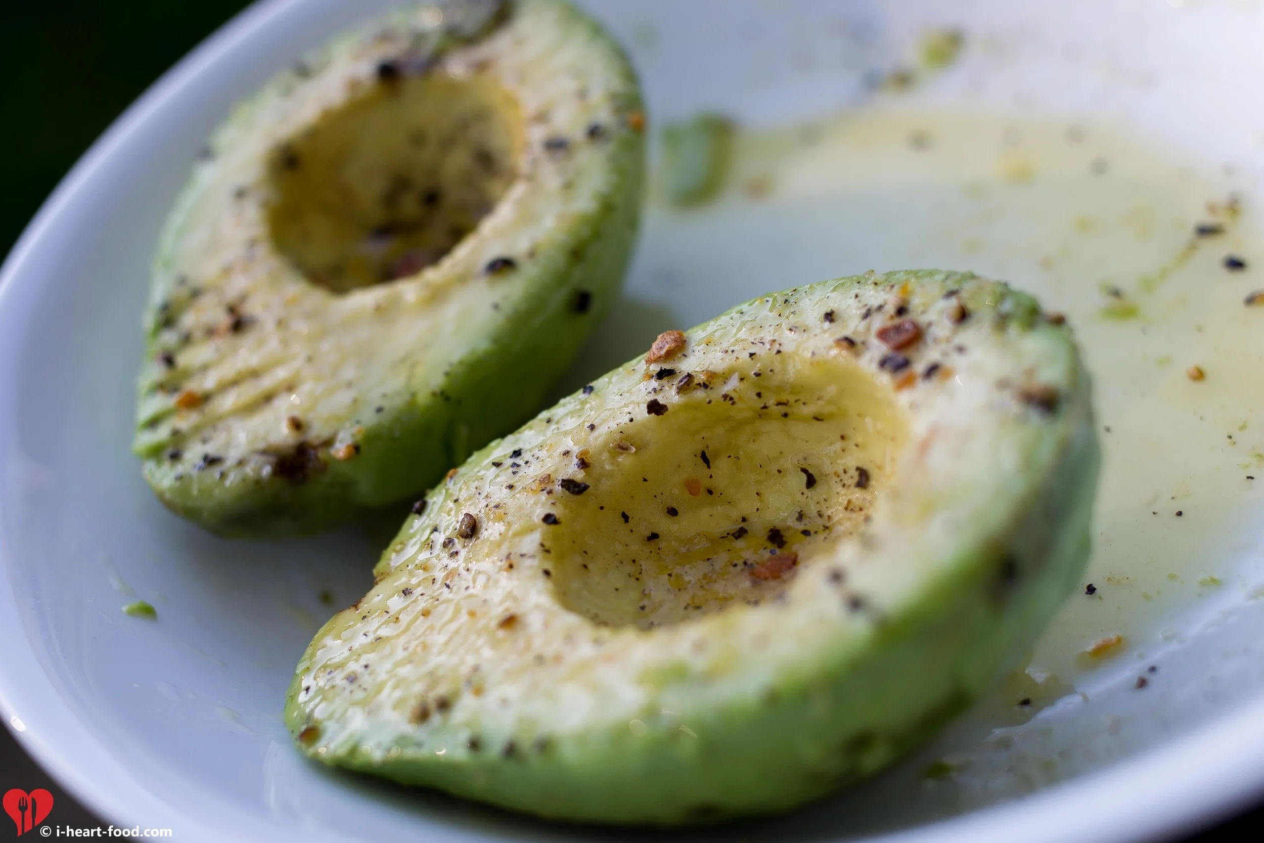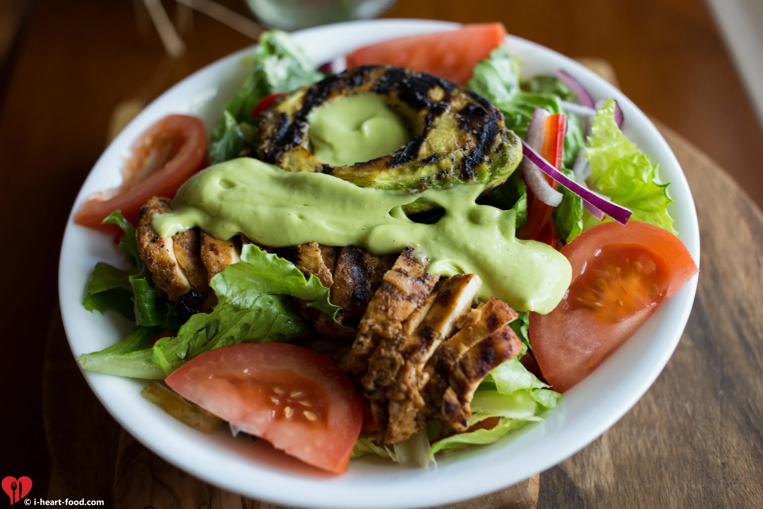 Thinking about some of the foods I like to eat around town, I remembered the grilled avocados and avocado salad at a local Mexican place down the road. Love that stuff. After doing a little research and recipe tweaking I think I have perfected the dressing. The grilled avocado is easy - just use some Montreal Steak seasoning and olive oil. Done!