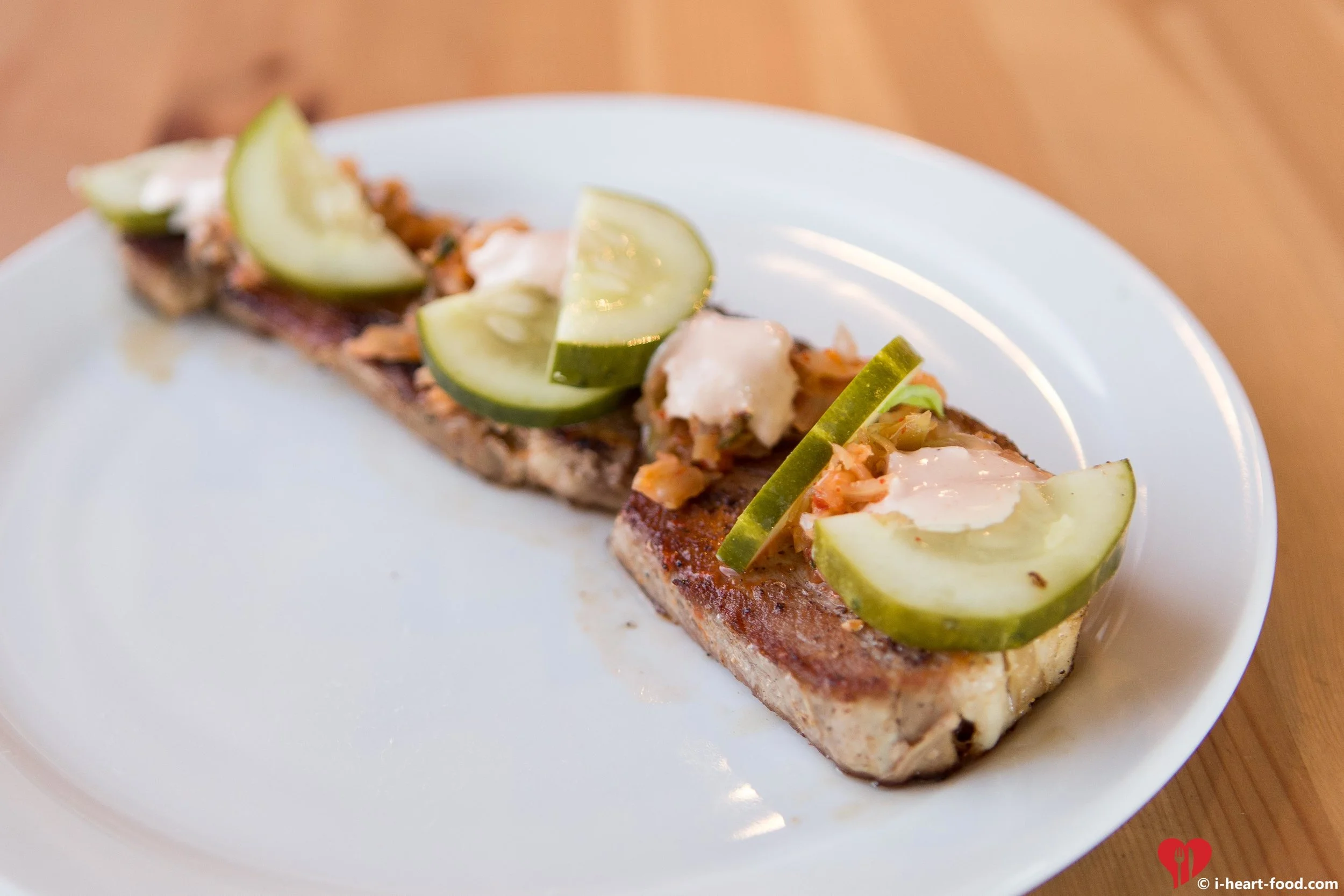 It wasn't long before the place was full (it sold out) and a lot of bottles were opened up loosening up the crowd. The food began to file out - dinner was being served by small plates with the option to eat as many as you desired. Always a bad idea when I'm around, just a fair warning to ya'll out there!