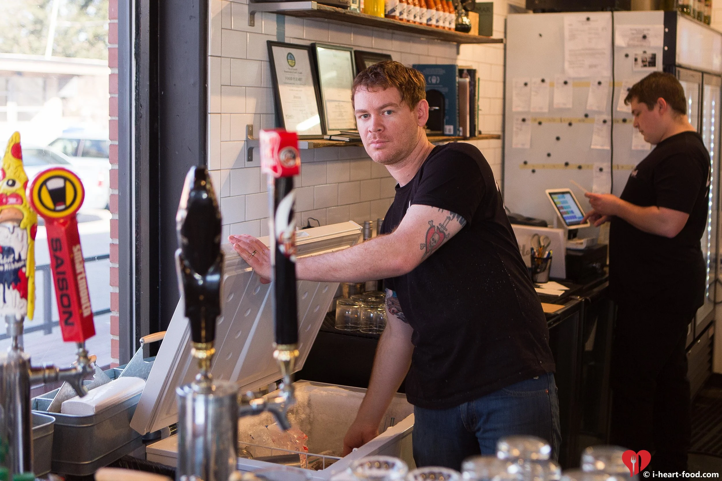 After our amazing dinner (thank you again Bay Local for the invite!) we headed over to Eso - that's what the cool kids call it - to meet up with the magazine and have a lil pour. When we walked in I saw Devin and Nate were behind the bar and Mikkel Luis having a drink. Mikkel came over here from Denmark to personally deliver an extra large Klask board to Devin. Why? Because Devin won it in a contest! Pretty cool eh? Mikkel is a super nice guy too, I think that was the third night in a row I got to hang out with him. Shelby and I go to the bar to chat and grab a beer.